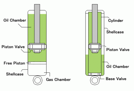 Đây là những bộ giảm xóc ống đơn và ống đôi mà bạn thường thấy trên các tạp chí, v.v.
